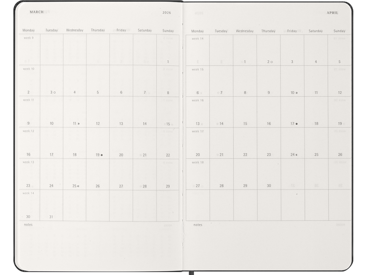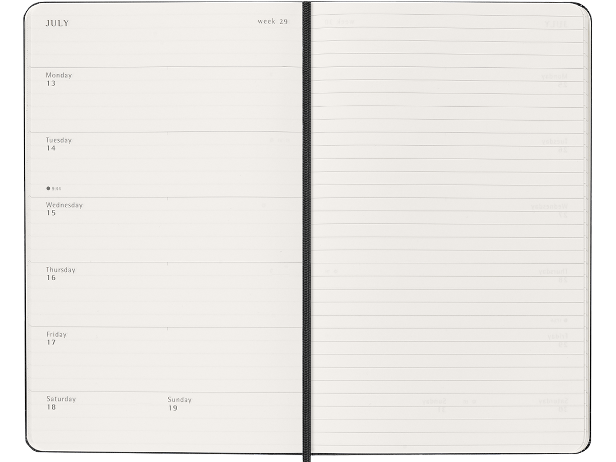- Useful tools: calendar, travel planning, ideas and goals, ruled pages for notes