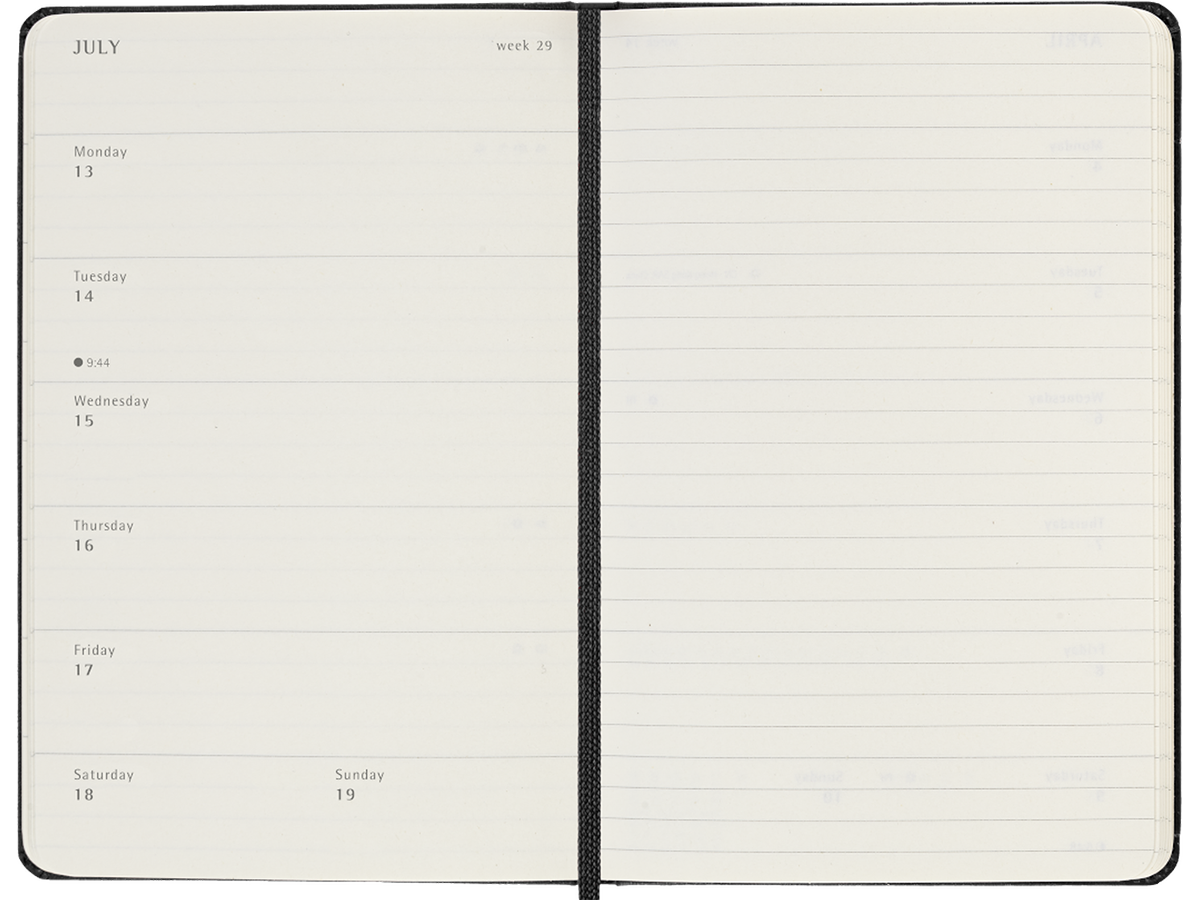 - Useful tools: calendar, travel planning, ideas and goals, ruled pages for notes