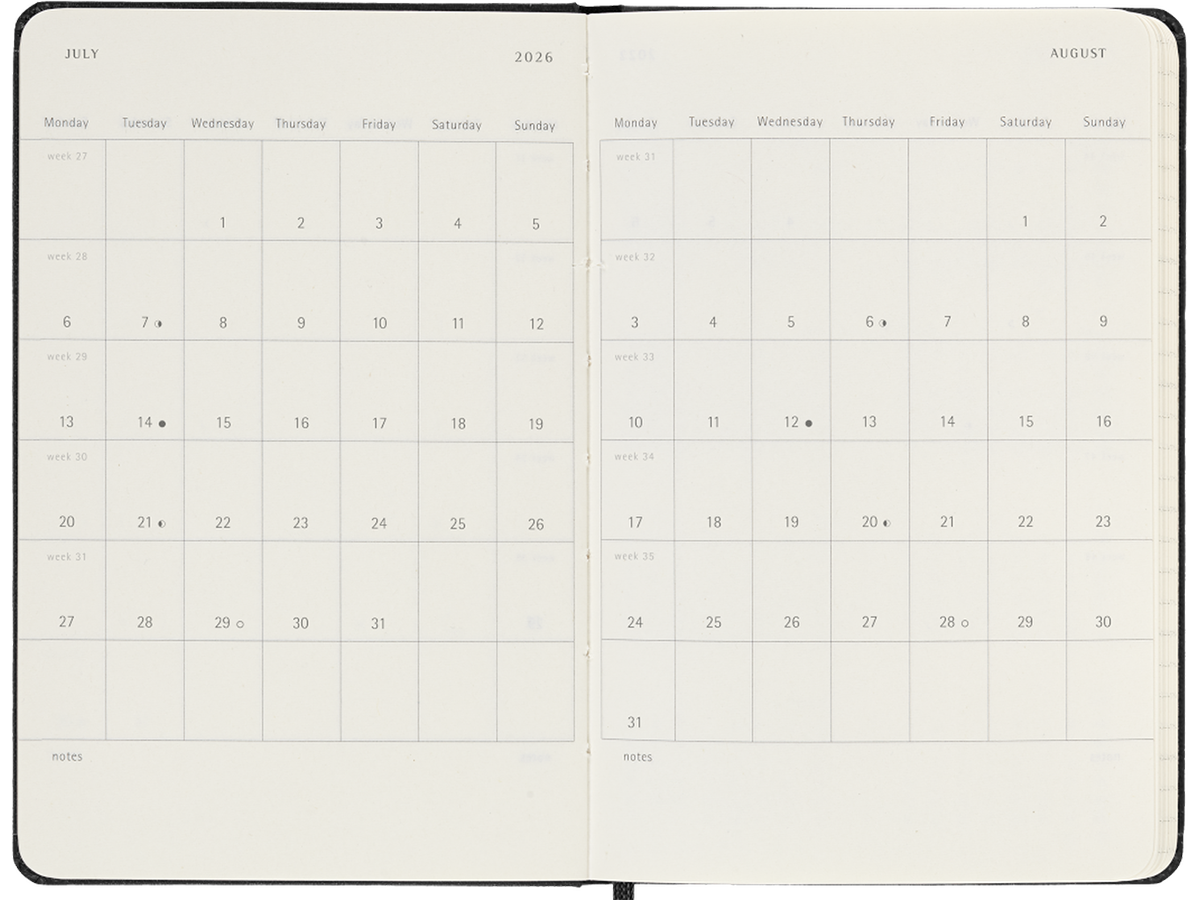 - Dated from January to December 2026