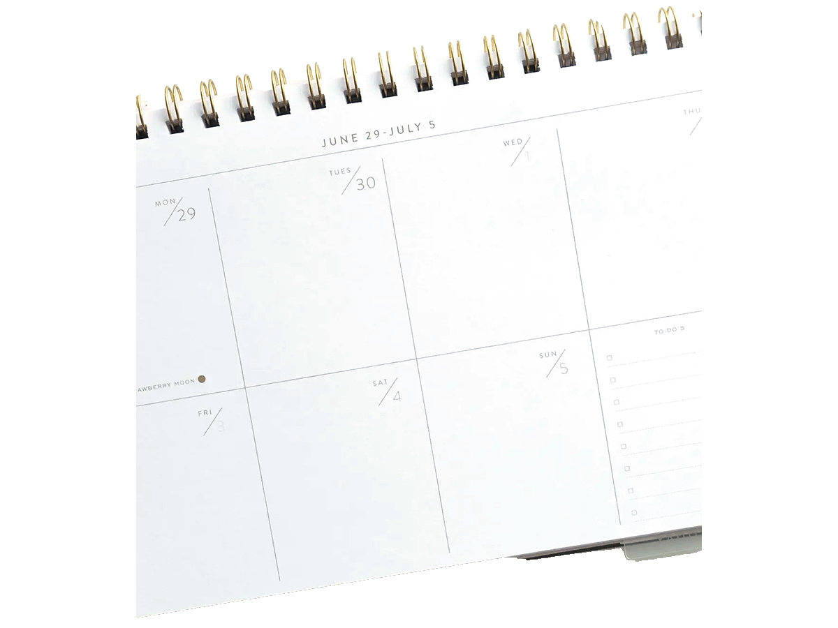 This horizontal format is the perfect addition to your desktop workspace. This linen-finished soft-cover planner features bold, full-color graphics, sections for daily, weekly, and monthly plans, as well as handy year-at-a-glance, goal-tracking, and notes sections. Fun –yet functional– additions like a detachable ruler bookmark make sure all your plans fall in line…beautifully!
