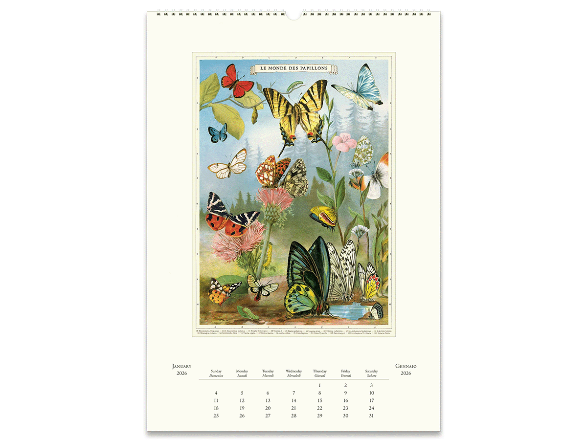 Discover a variety of stunning designs with Cavallini's 2026 WALL Calendar. These carefully curated images from Cavallini's vast collection of vintage ephemera are printed on high-quality Italian paper, giving you a touch of sophistication every month. Enjoy 12 months of timeless beauty with themed designs. Images are suitable for framing.