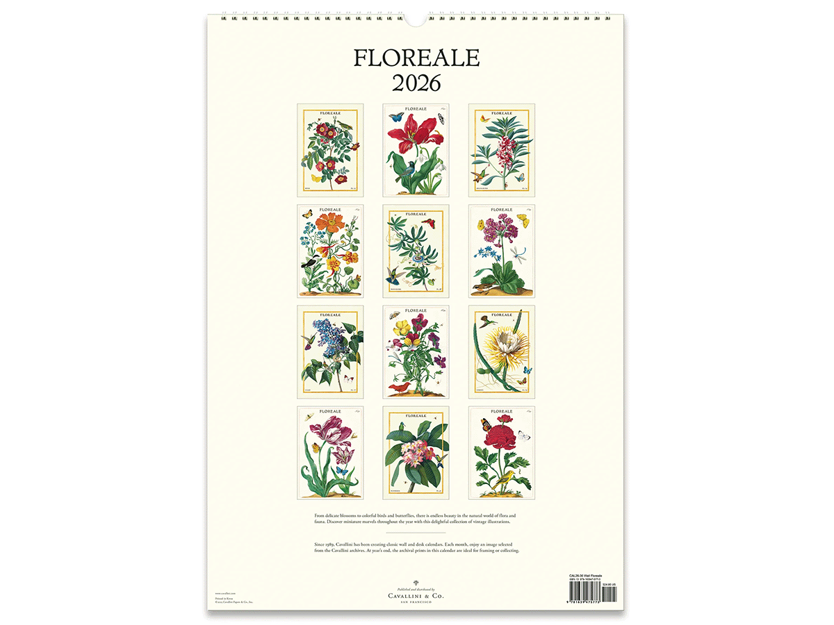 Discover a variety of stunning designs with Cavallini's 2026 WALL Calendar. These carefully curated images from Cavallini's vast collection of vintage ephemera are printed on high-quality Italian paper, giving you a touch of sophistication every month. Enjoy 12 months of timeless beauty with themed designs. Images are suitable for framing.