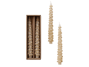 Cream & Gold Tree-Shaped Taper Candles, Set of 2