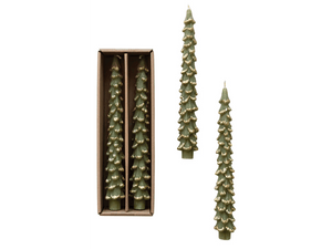 Green & Gold Tree-Shaped Taper Candles, Set of 2