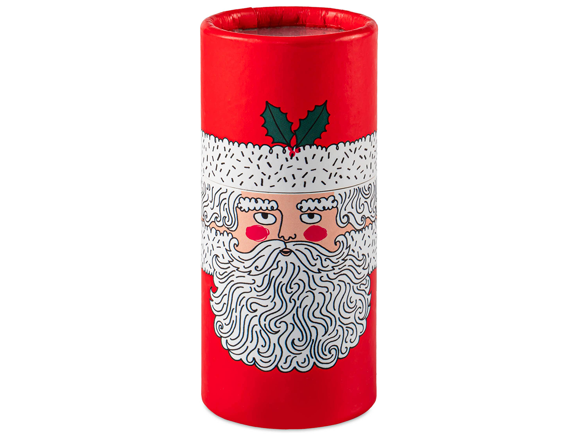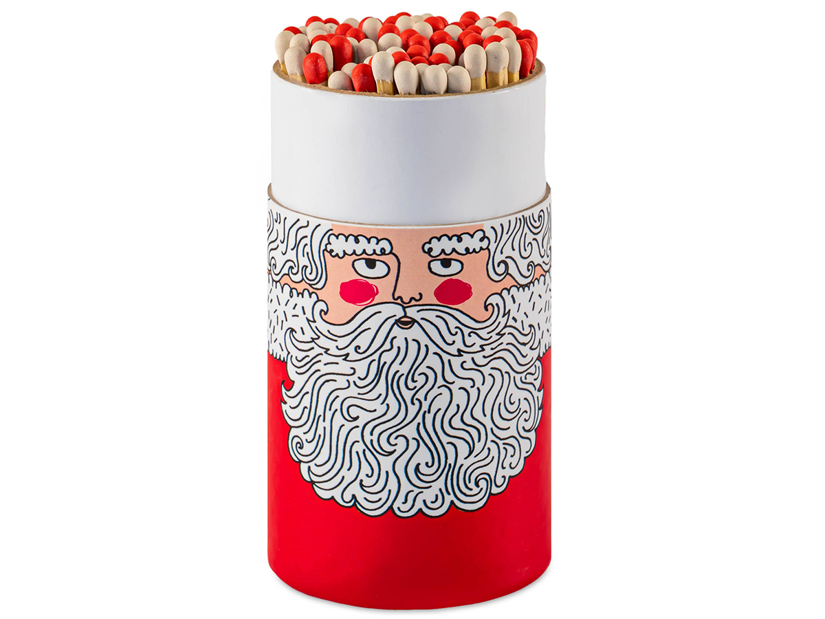 With a full white beard and a sprig of holly decorating his hat, this large match cylinder is an oll round festive favorite.