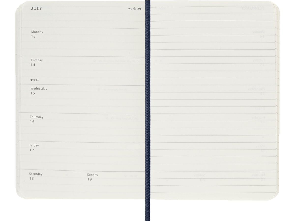 - Useful tools: calendar, travel planning, ideas and goals, ruled pages for notes.