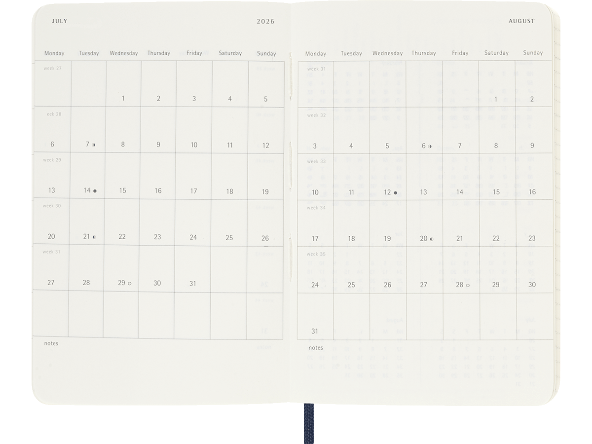 Dated from July 2025 to December 2026, this 18-Month Weekly Planner lets you see the whole week at a glance, while also providing yearly and monthly snapshot pages for a broader overview of the year. These are followed by pages for travel planning, ideas and goals.