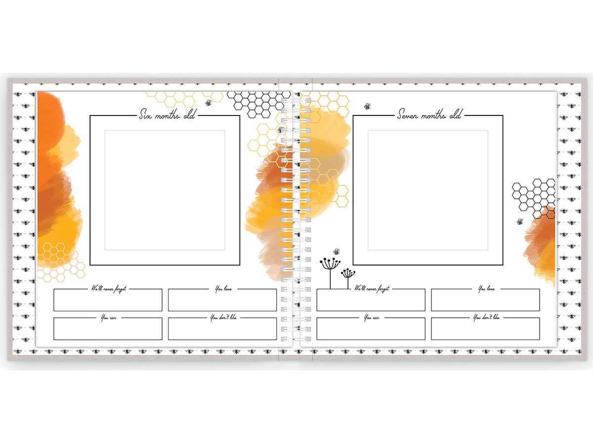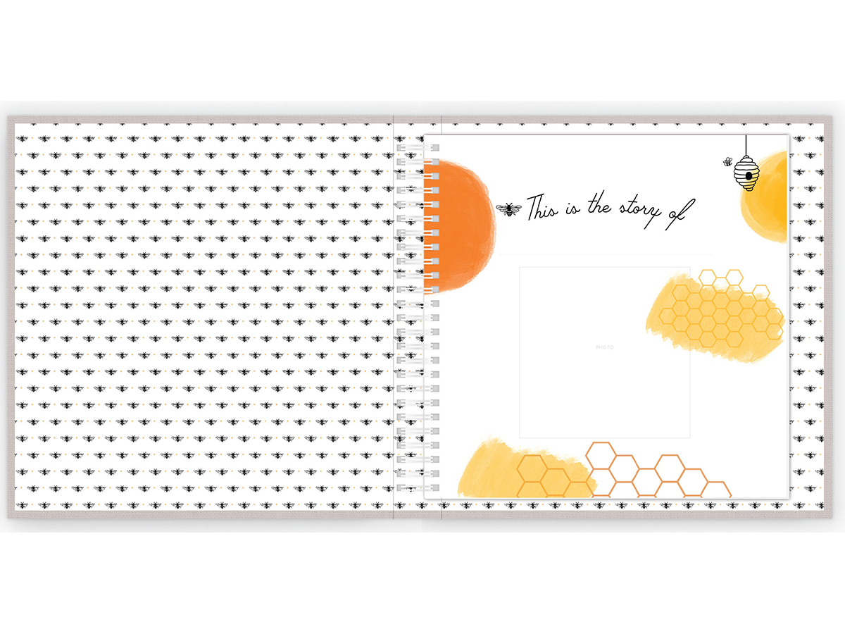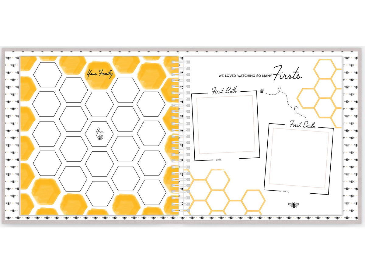 Honey Bee Luxury Memory Book captures each darling moment from pre-birth to the first day of school, complementing baby's journey with its precious bees, honeycombs, and beautiful beehives.