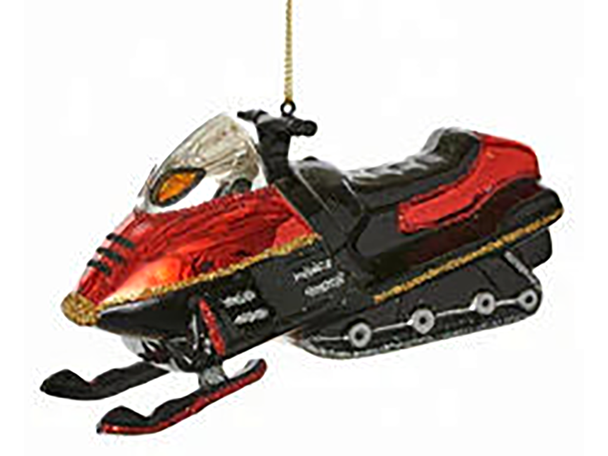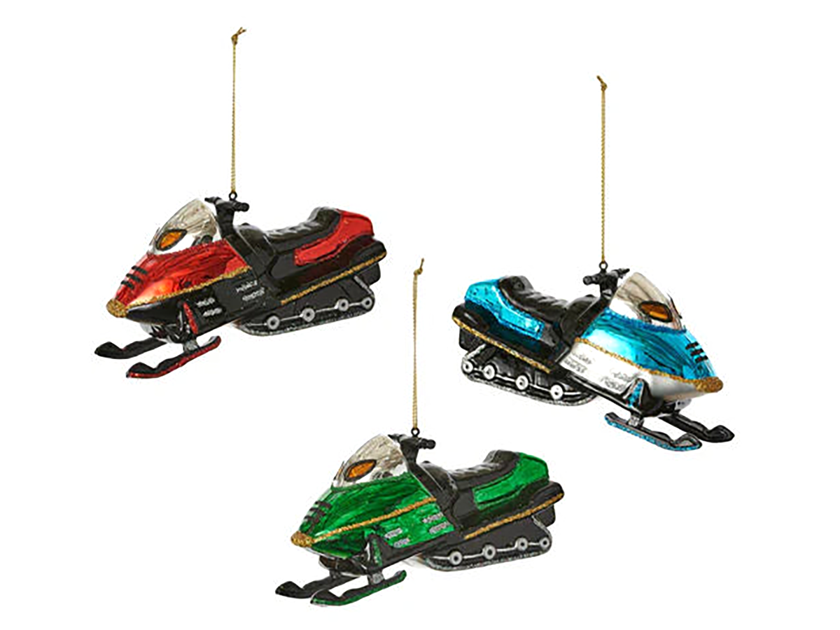 Add a touch of whimsey fun this Holiday season with one of these glass snowmobile ornaments!