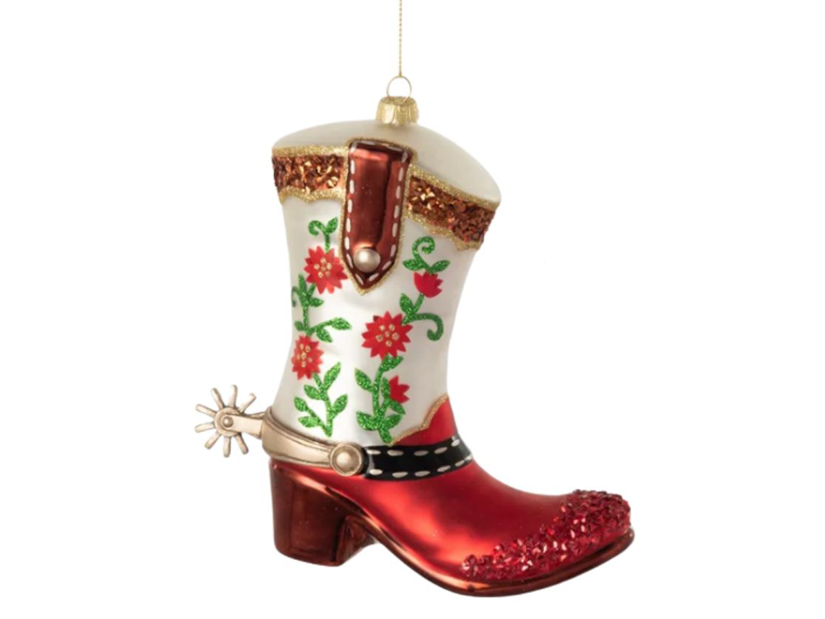 - Glass.- Hand blown. - Hand painted.- 7 x 6.5 x 2.5".- 9"H Including loop for hanging.