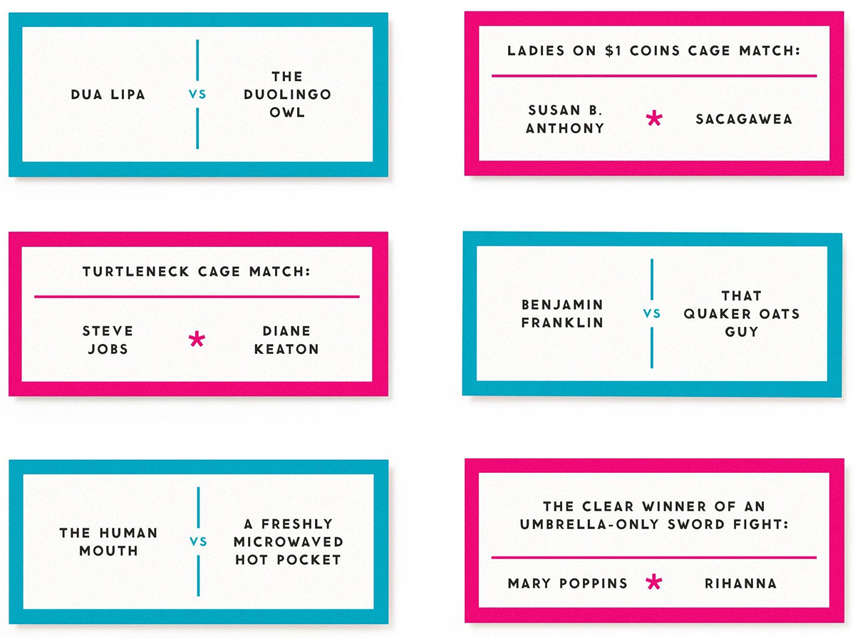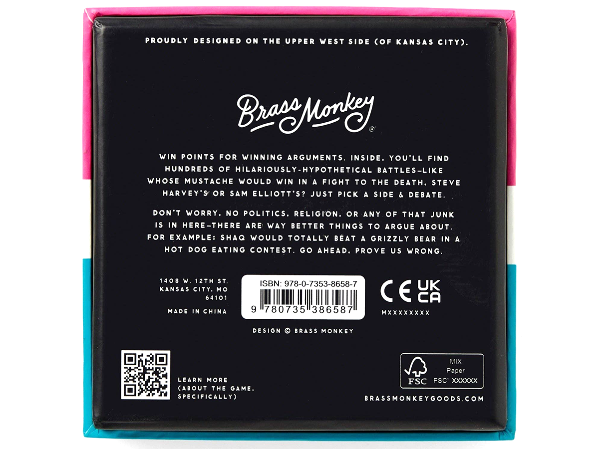 Win points for winning arguments. Inside, you’ll find hundreds of hilariously-hypothetical battles–like whose mustache would win in a fight to the death, Steve Harvey's or Sam Elliott's? Just pick a side and debate.